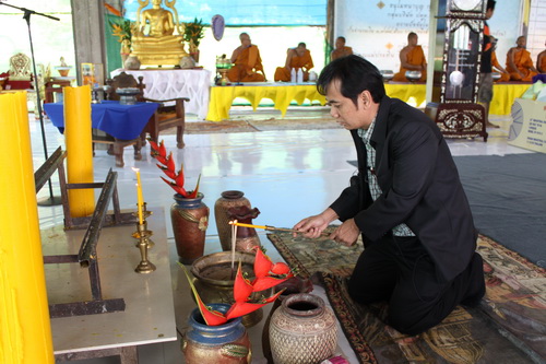 อ.ไชยา ประธานผ้าป่า จุดธูป เทียน ถวายพระ เริ่มพิธีทอดผ้าป่า