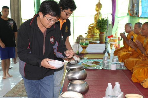 พี่ประเสริฐ ประเคนอาหารแด่พระสงค์