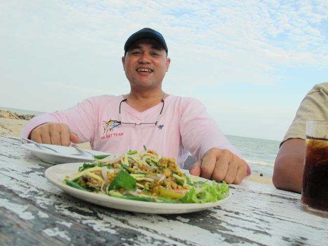 - หาร้านทำกับข้าวกินกันก่อนกลับกรุงเทพ.....ยำไข่แมงดาไปก่อนขณะรอ จานโปรด...