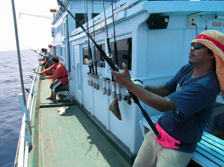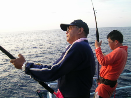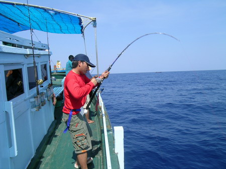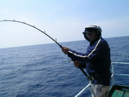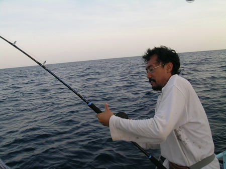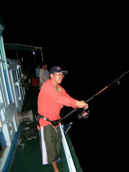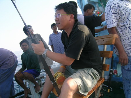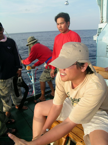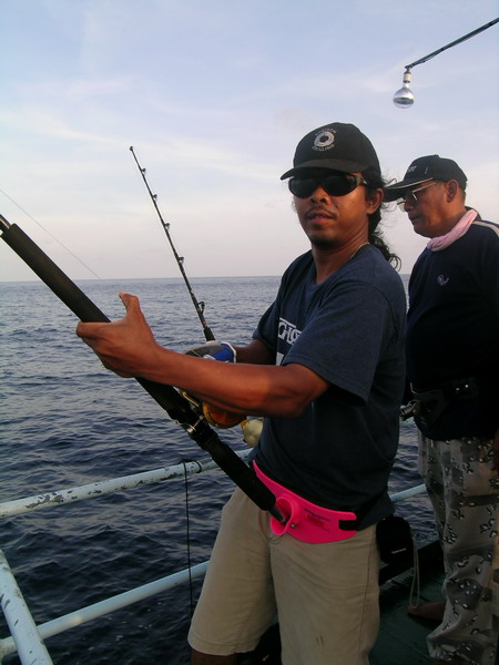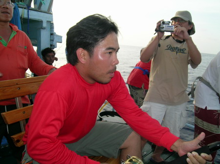 นายวิทยา กระโดด ขึ้นมานั่ง เป็นรายต่อไป เมื่อ รอก Shimano TI 30 LRS ส่งเสียง ดังลั่น ด้วยแรงกระชาก ไอ้ ลูกหนำเลียบ......