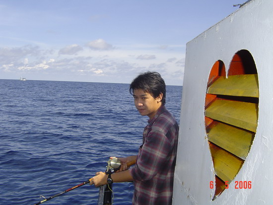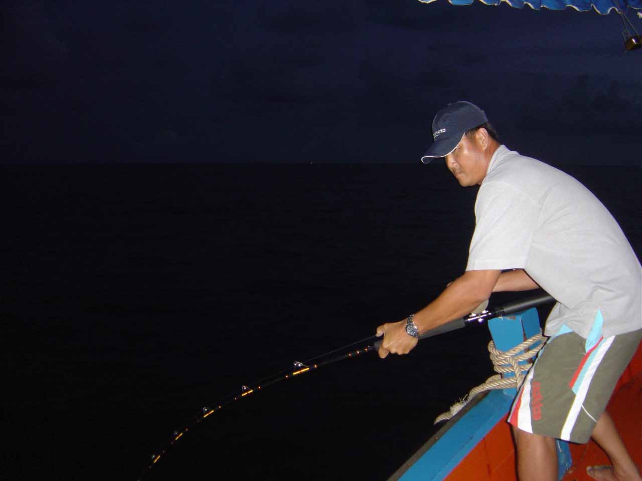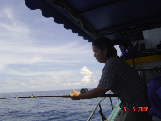 ภาพบนเรือไต๋โก๊ะ..ผู้เฉหมึก 3 ครั้งได้หมึก 3 ตัว แต่ก็สามารถชนะเลิศปลาใหญ่ได้