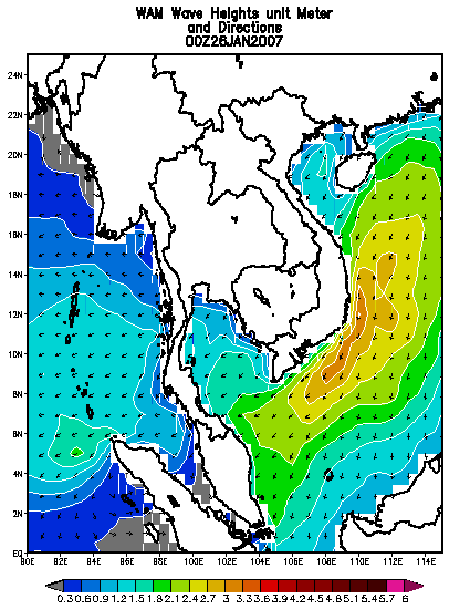 ในช่วงวันที่ 26-30 ม.ค. นี้ ความกดอากาศสูงกำลังค่อนข้างแรงระลอกใหม่จากประเทศจีนจะแผ่เสริมลงมาปกคลุมประเทศไทยตอนบน ลักษณะเช่นนี้ ทำให้บริเวณดังกล่าวมีอุณหภูมิลดลง 2-5 องศา สำหรับคลื่นลมในอ่าวไทยและทะเลอันดามันจะ มีกำลังแรงขึ้น โดยในช่วงวันที่ 26 -30 ม.ค. อ่าวไทยตอนล่างและทะเลอันดามัน จะมีคลื่นสูง 2-3 เมตร และห่างฝั่งอ่าวไทยตอนล่างถึงทะเลจีนใต้ จะมีคลื่นสูง 3-4 เมตร ข้อควรระวัง ในช่วงวันที่ 24-26 ม.ค. นี้ บริเวณประเทศไทยตอนบนยังคงมีหมอกหนาในหลายพื้นที่ในตอนเช้า ขอให้เพิ่มความระมัดระวังอันตรายในการใช้รถใช้ถนน และในช่วงตั้งแต่วันที่ 26-30 ม.ค. ชาวเรือในอ่าวไทยตอนล่าง และทะเลอันดามัน ควรเพิ่มความระมัดระวังในการเดินเรือ เรือเล็กควรงดออกจากฝั่ง"