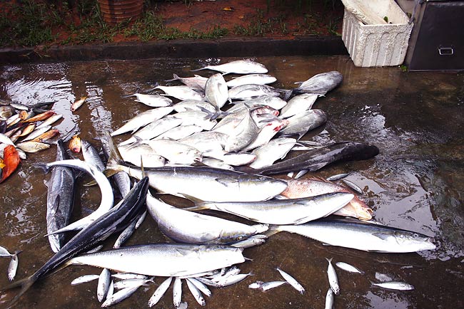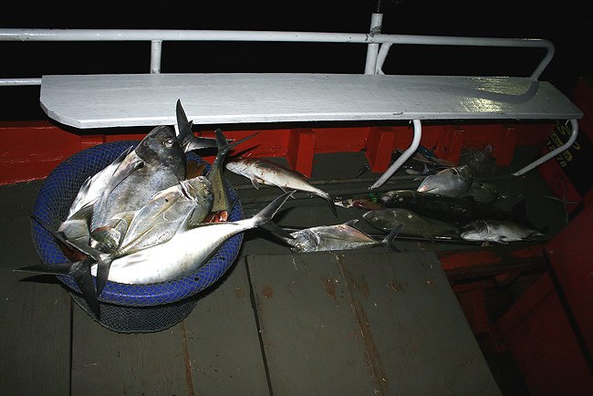 ปลาที่ได้เต็มดาดฟ้าเรือและรวมด้วยอังเกยและกระพงแดงก็เข้าแจมด้วยเป็นครั้งกลาว