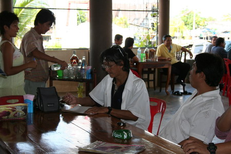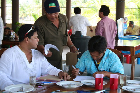 คุณบรรจง กำลังกรอกเอกสาร โดยมีเจ้ารวยปลาแมน แอบดูเหมือนลอกข้อสอบ สมัยเรียนเลยอ่ะ