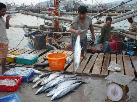 ระหว่างรอพี่ซิง-พี่หมูมีเรือที่ออกไปปั่นปลาเก๋ยเข้ามาเทียบท่าพอดีหันไปเห็นปลาอินทรีเลยเอาภาพมาให้ดูก่อน