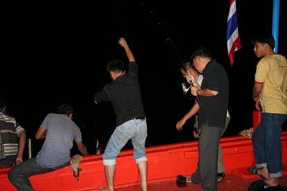 ต้องวิ่งเรือส่งที่ท่า กลับบ้าน ก็มี นี่ดีนะ ที่ช่องไดน์หมึกไม่ไกล เหมือนตราด ไม่งั้นสงสัย มีอวก จนตายแน่...