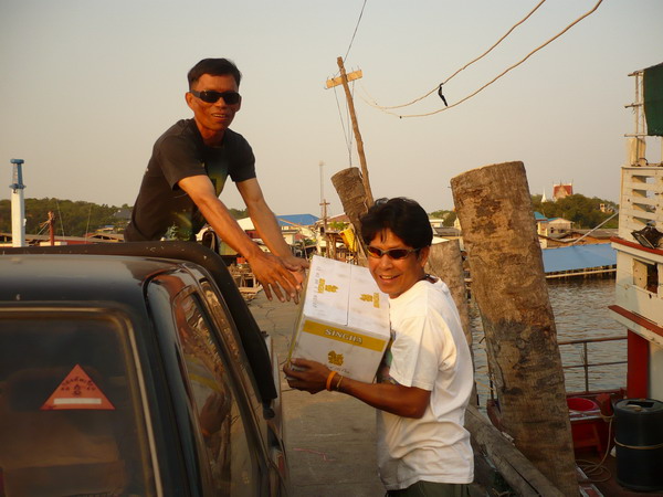แล้วก็เริ่มขนของลงเรือกันเลย