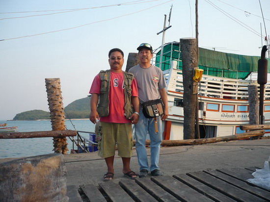 ช่างปื๊ด...อาศัยความเก๋าที่ลงเรือมาหลายครั้งกำลังบอกคุณพ่อน้องเจเจ...ว่าการลงเรือนั้นต้องเหยียบไม้อย่างก่อนนี้น๊ะก่อนจะก้าวลงเรือ