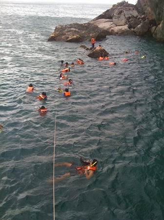 เรือลำนี้ก็มาดำน้ำดูปะการังที่นี่