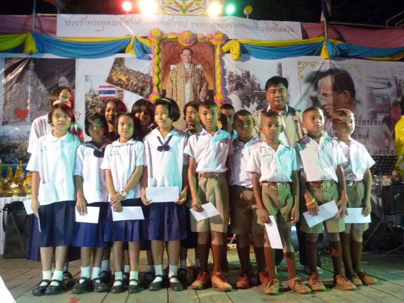 ไปถึงกำพวน ก็เริ่มมอบทุนการศึกษาให้ เด็กกำพร้า จากฤทธิ์ สึนามิ รวมทั้งหมด 15 ทุน