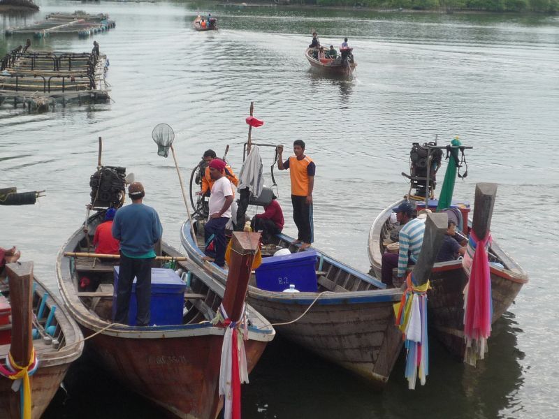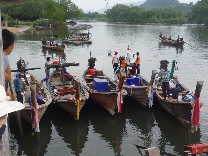 เรือเริ่มออกจากท่า มีการแซวกันไว้ตั้งแต่ตอนสังสรร ใครได้เรือปู เรือกุ้ง หรือเรือตกปลาก็แล้วแต่โชคในการจับสลาสก