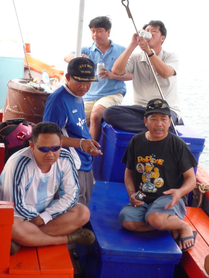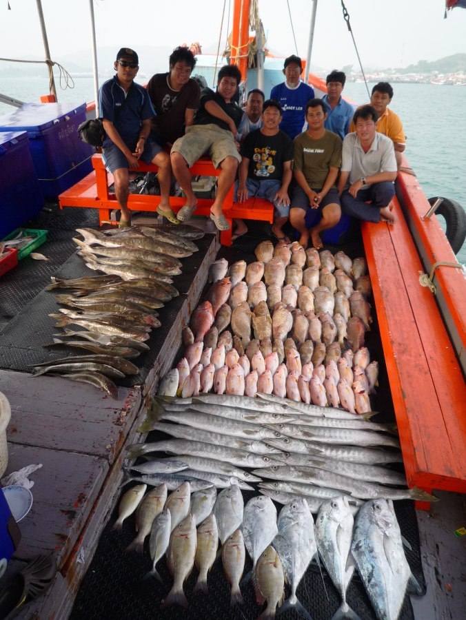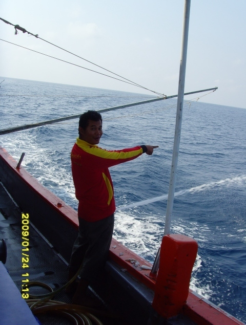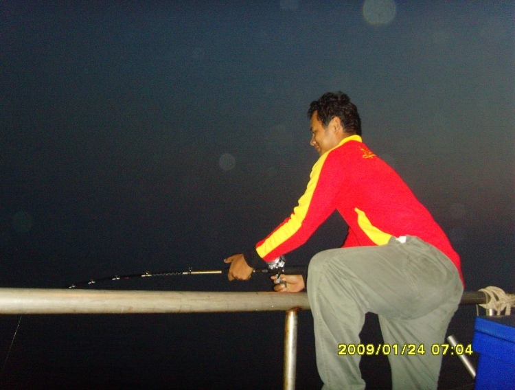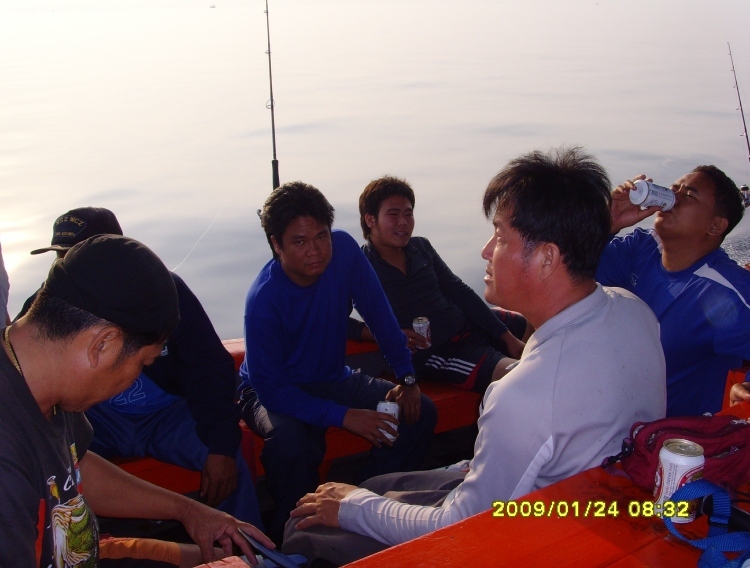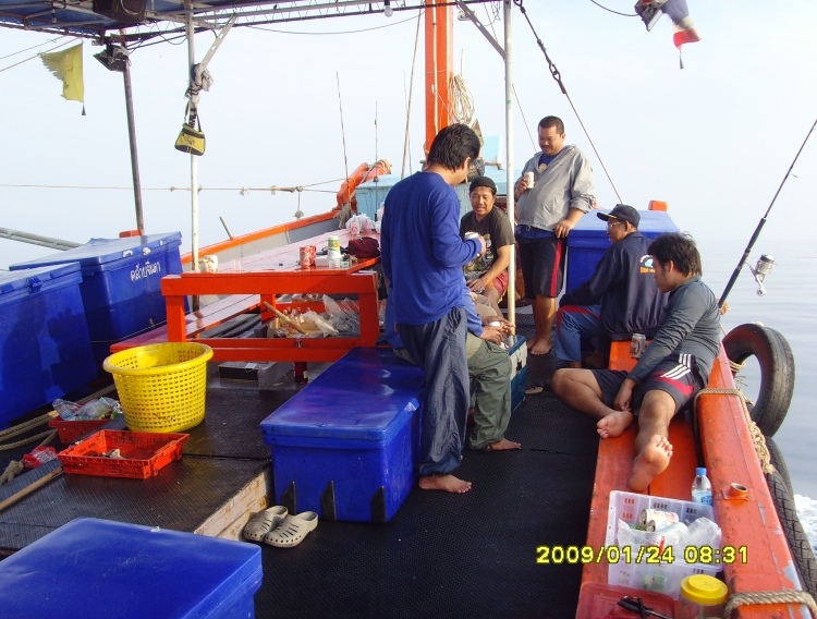 ทริพนี้ชาวคณะตั้งใจจะไปตามหาแม่โฉมงามกัน ออกเรือที่แสมสาร 21-24 ม.ค. 52 ข่าวดีมาก่อนเสมอ ที่ท่าเรือนักตกปลาที่กลับขึ้นมาได้แม่โฉมงามมา 37 ตัว แต่ที่หมายนอกน้ำไม่ค่อยดี เจอเข้าจริงๆครับ ไดน์หมึกไม่มีตัวหรี่ไฟครั้งแรกน้ำแดงไม่มีหมึกเลยมีกระตอยโผล่มาสอง สาม ตัว ไต๋วิทยุเช็คอีกลำที่จ้างออกมาไดน์หมึกช่วยกะประหยัดเวลา เหมือนโดนกลั่นแกล้ง ไต๋อีกลำบอกได้หมึกสิบกว่าตัว ทริพนี้กว่าจะได้วิ่งเรือออกหมายนอกปาเข้าไปตีห้ากว่าได้หมึกไม่เกินสามร้อย เอาหน่ะ...หมึกไม่ดี ปลาดี...