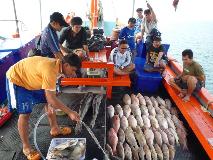 ใกล้ฝั่ง เริ่มรื้อปลาออกมาเรียง