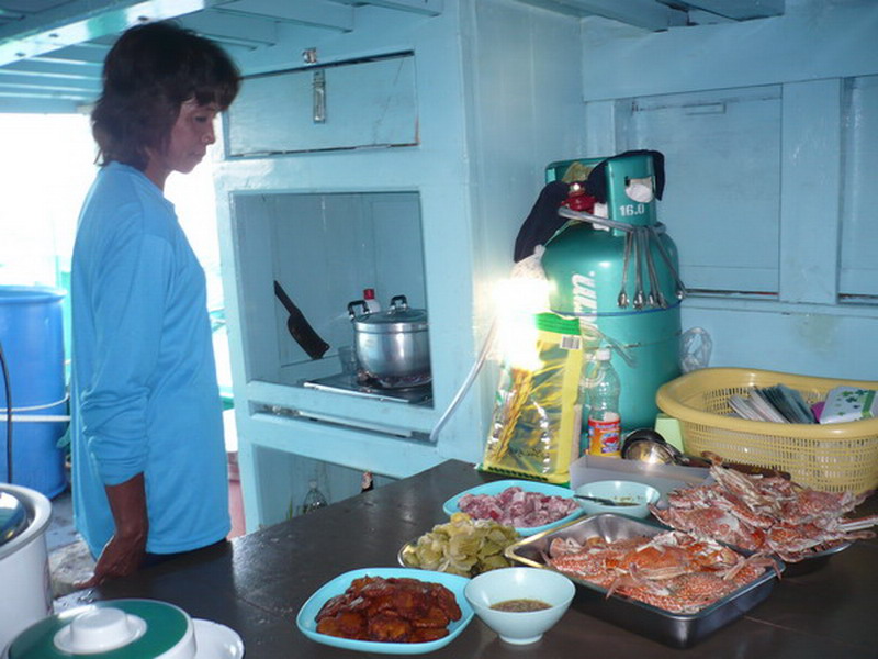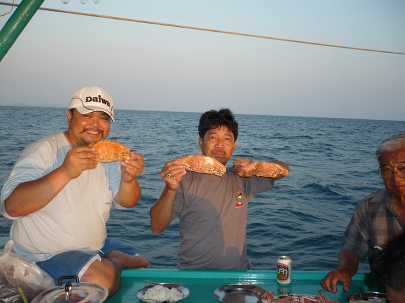 อาหารมื้อแรกสั่งให้หาปูสดๆไว้รองรับสมาชิกถึง5กืโล....แถมด้วยหมึกสดอีก2กระจาดไว้บริการน้องๆที่กลางอ่าวด้วยครับ