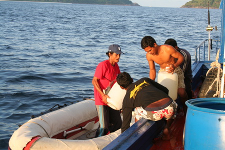 ต้อง วิทยุขอน้ำดื่มจากเรือทัวร์ดำน้ำ วิ่งมาส่งให้ถึงเรือ