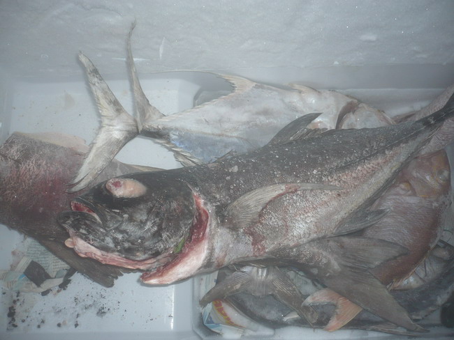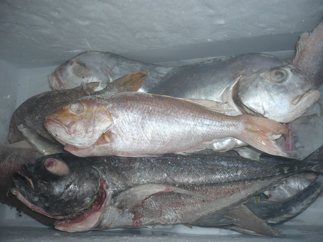 แจ้งข่าว เรือลาภสมุทรทริพของตุ๋ย ฟิชชิ่ง ที่พึ่งกลับมาเมื่อ 31 มี.ค. ได้ปลามาไม่น้อย สัก 500-600 กก. แต่เป็นปลากลางคืนล้วนๆ กลางวันน้ำตาย ตะกั่ว100กรัมยังนิ่งไม่ไหลไม่ไหวติง ปลาไม่แตะเหยื่อเลย ที่สำคัญเหยื่อหมึกไม่ค่อยมีเห็นว่าได้หมึกเป็นไปแค่ร้อยกว่าตัว ดีที่มีหมึกตายติดไป และเน้นจิ๊กเป็นหลัก