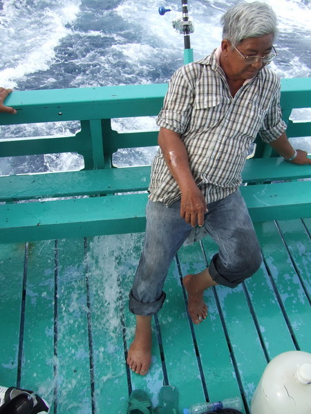 ช่วงตี4ตอนที่เรือวิ่งเข้าฝั่งนั้นสายพานปั๊มน้ำเกิดขาดต้องดับเครื่องเพื่อเปลี่ยนสายพานใหม่ แต่ไม่ได้ทิ้งสมอคลื่นก็แรงแถมเรือไปขวางคลื่นอีก น่ากลัวมากหนักเข้าไต๋จึงตัดสินใจทิ้งสมอเพื่อไม่ให้เรือขวางคลื่นไม่งั้นเรืออาจคว่ำลงได้ มีการเรียกหายาหม่องยาดมกันวุ่นวายไปหมด กว่าจะติดเครื่องได้ก็เกือบ6โมงเช้าแล้ว....