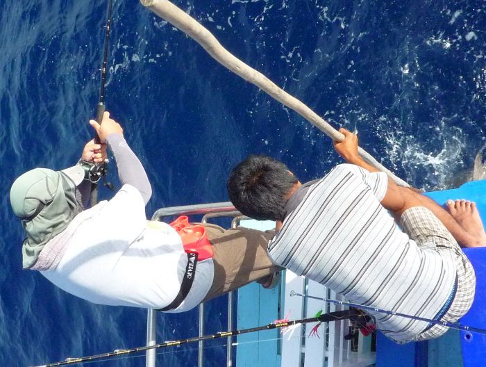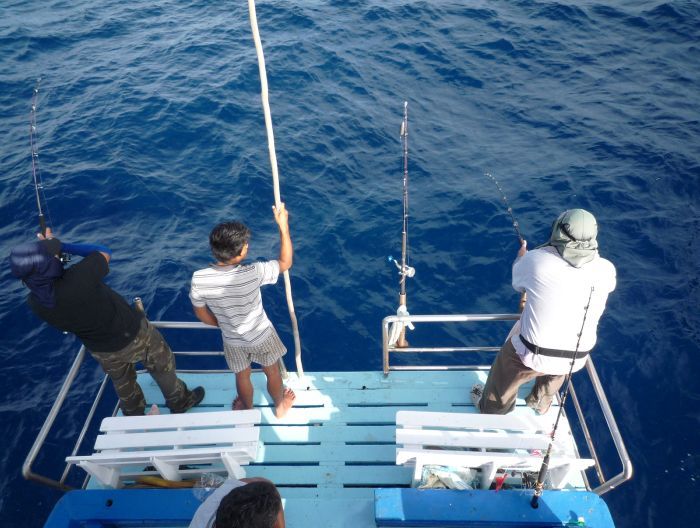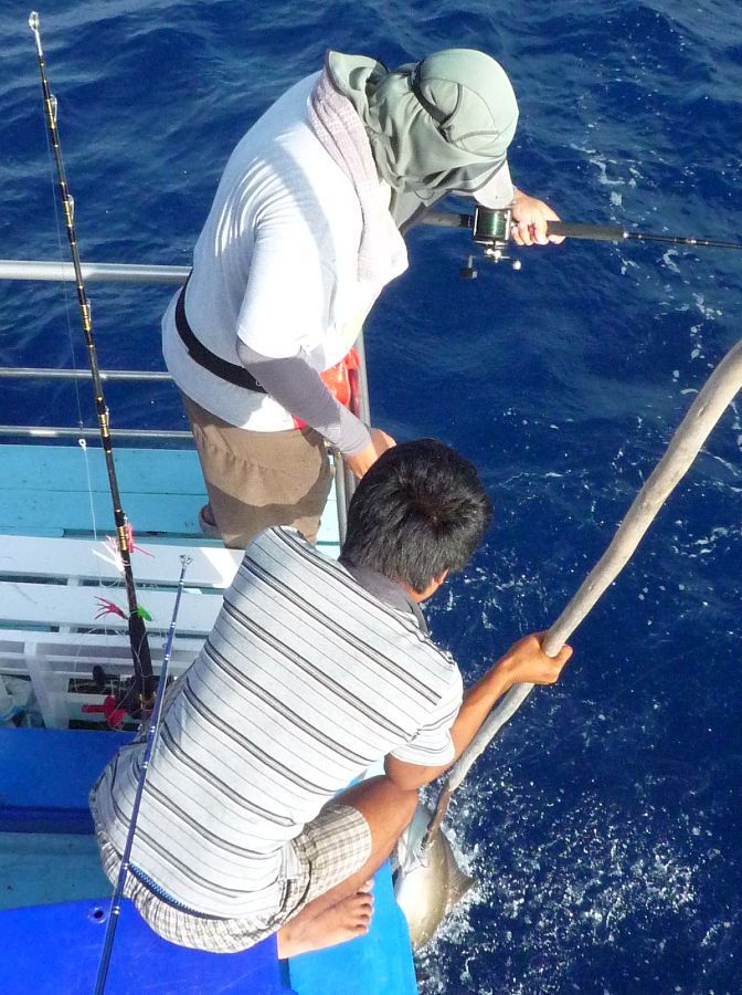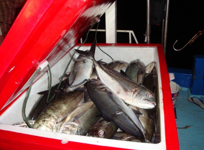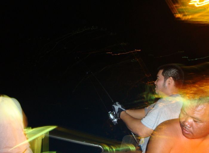 ฉักฮื้อโจมตีเหยื่อจิ๊กอย่างเมามันจนไม่มีใครยอมเป็นตากล้อง จิ๊กขึ้นมา จิ๊กขึ้นมา ปลดแล้วโยนลงถังแช่เลยเพราะไม่ให้พื้นลื่น ถัง 500 ลิตร เผลอแป๊บเดียว เต็มครับ...ปลาล้วนๆ...