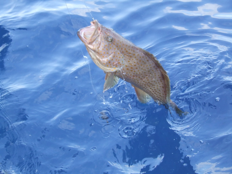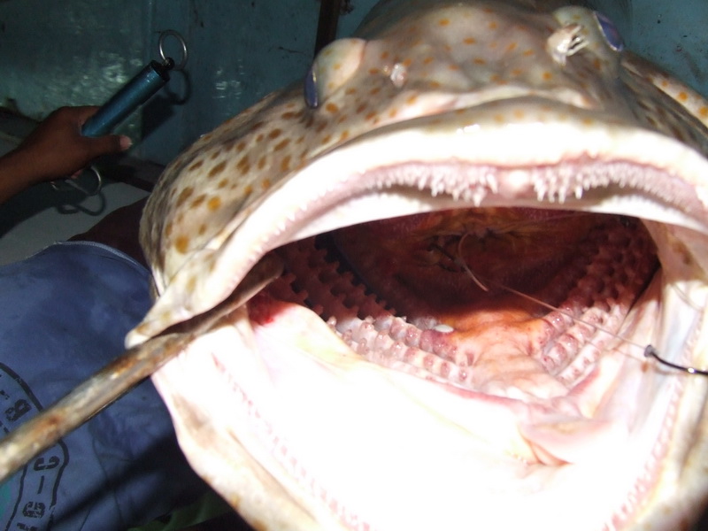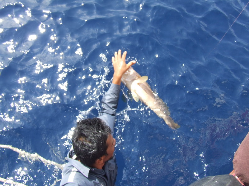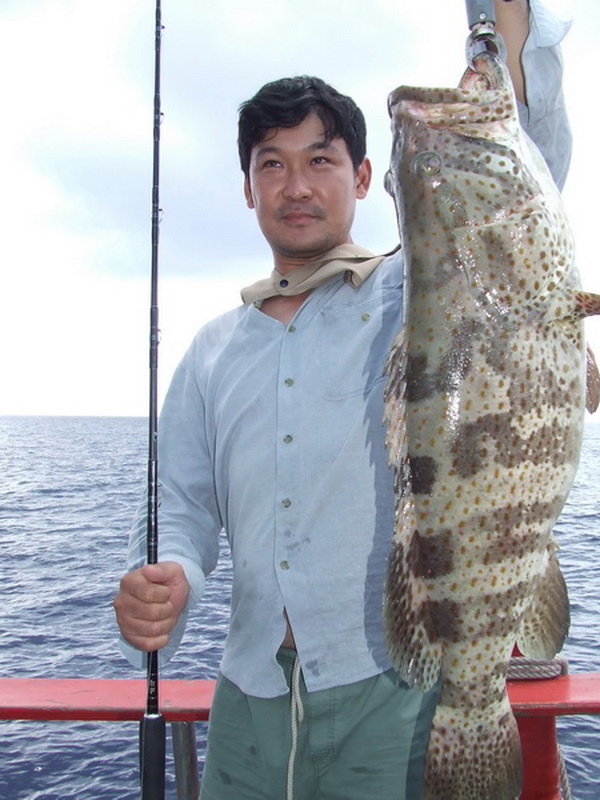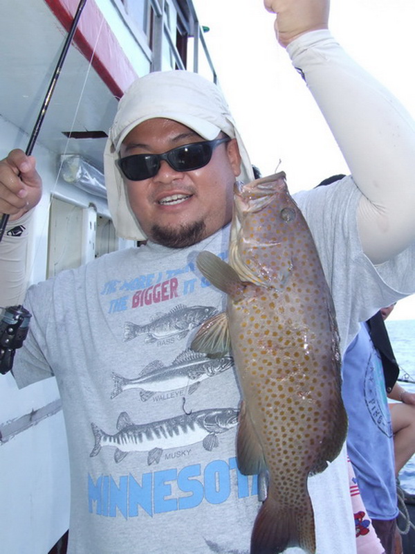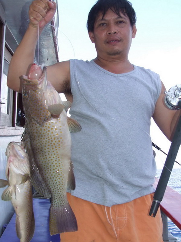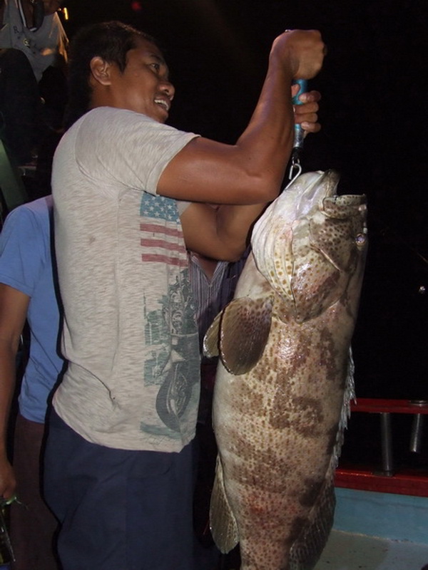 ต่อมาผมเห็นปลาเก๋าลอยมาโดยไม่มีสายเบ็ดของใครเลย แน่นอนมันลอยห่างจากเรือไปเกือบ10เมตรแต่จุมโพ่ตัดสินใจโดดลงน้ำไปเก็บมาจนได้สุดยอดจริงๆขอตบมือให้ตรงนี้อีกครั้งครับ
