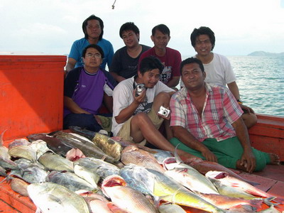 เป็นทริปที่มันไปอีกแบบหนึ่งครับ ปลามันขึ้นเอาใจเรือที่จอดรออยู่แทบทุกลำเลย ท้ายเรือ ข้างเรือไม่เกิน 20 เมตร ตีไปปลากินเหยื่อแล้ววิ่งแต่ก็ขาด จะตีเหยื่อป๊อบ แต่ดันไม่ติดธงซะอีก เหยื่อป๊อบเราก็มีไปน้อย ขาดไป 2 ตัว เลยไม่มีเหยื่อตีปลากระมง ได้แต่มองลำอื่นอัดปลากัน