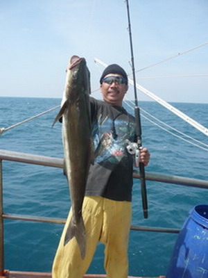 มีแต่เรือไต๋หนึ่ง...ที่ได้เหยื่อแล้วก็วิ่งยาวไปหมายเรือจมไม้115ไมล์ใช้เวลาเดินทางประมาณ17ชั่วโมงได้ปลาอังเกย-สาก-โฉมงาม-แดงเขี้ยว-ช่อน-ชั๊กฮื้อ แค่หมายนี้ที่เดียวก็ขนขึ้นมาประมาณ110ตัวเข้าไปแล้ว