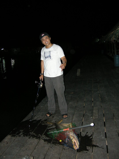 ตีเบ็ดออกไปไม่นาน น้าอู๊ดก็ได้อัดบ้าง ใช้เวลาไม่นานมันก็ลอยมาอยู่ใกล้แพ ในขณะที่น้าต้นหลิวเริ่มอัดบ้าง