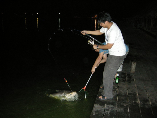 คืนนี้ปลากินดีมากเลย นั่งไม่นานน้าใหญ่ฯ ก็ลุกขึ้นมาอัดอีกตัวแล้ว จากภาพดูเหมือนเซียนเอาไปอีกนิดแล้ว