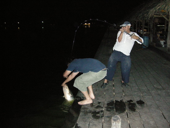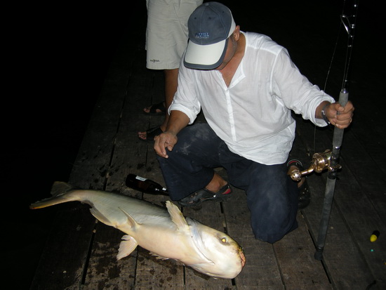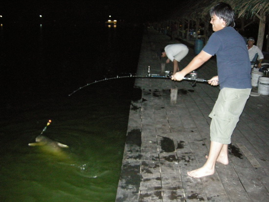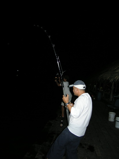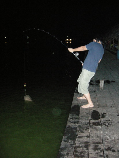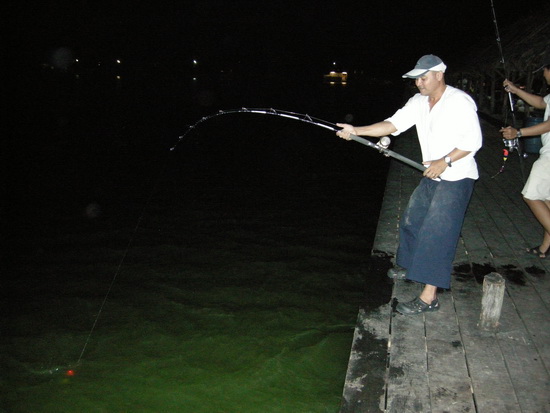 เมื่อปลาถูกอัดเข้ามาจนใกล้มันก็ได้สำแดงพลังภายในตัวที่มีอยู่ออกมาให้ประจักษ์ แก่สายตาด้วยการกระชากสายมุดเข้าใต้แพ แม้งน้องเม้งผู้ด้อยด้านประสบการณ์จะพยายามออกแรงงัดสักเพียงใดมันก็ยังคงมุดเข้าแพอยู่ตลอดเวลาจนน้องเม้งอ่อนแรงจนขาสั่น ต้องเปลี่ยนมือให้น้องเนมเข้ามาอัดแทน