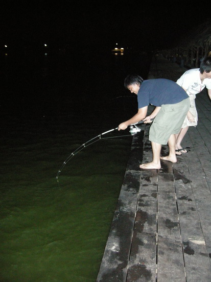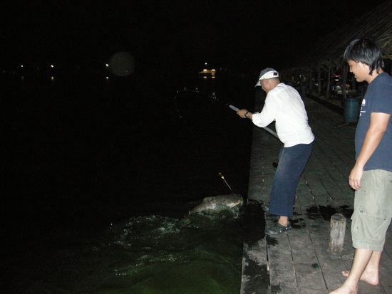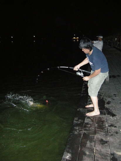 หลังจากน้าต้นหลิวทำปลาหลุดไปแล้วเป็นที่ของพวกเราบ้างเมื่อสายในรอกของน้องเนม(ชุดที่ตกน้ำ)ถูกดึงอย่างแรงจนขวดล้มลง เนมจึงส่งเพื่อนไปอัดทันที่