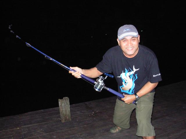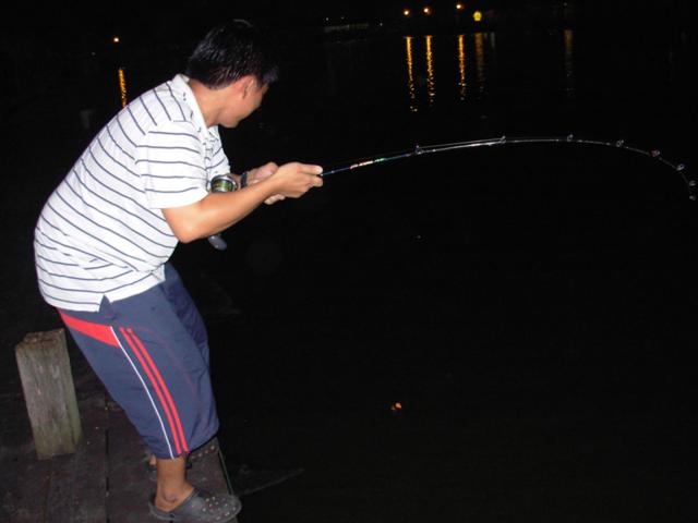 น้าใหญ่รีบเข้าไปคว้าคันขึ้นมาถือไว้ในมือพร้อมออกแรงอัดอย่างต่อเนื่อง เพียงไม่นานก็ได้ตัวขึ้นมาให้ถ่ายรูปไว้เป็นหลักฐาน