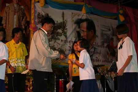 ไปถึงกำพวน ก็เริ่มมอบทุนการศึกษาให้ เด็กกำพร้า จากฤทธิ์ สึนามิ รวมทั้งหมด 15 ทุน