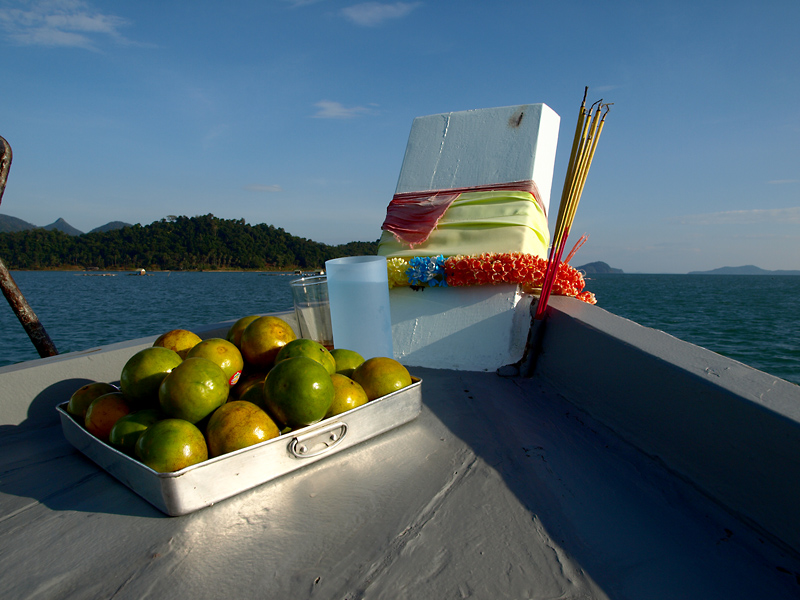เราไปกับไต๋เพชรแห่งอ่าวสลักเพชร ลงเรือปุ๊บเราก็ขอโชคลาภจากแม่ย่านางเรือ