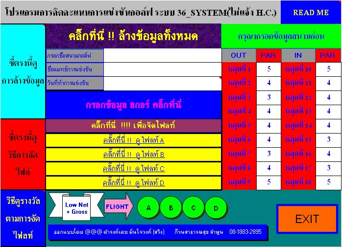 สำหรับเพื่อนๆที่เล่นกอล์ฟแล้วอยากจะลองคำนวณ Handicap ตัวเองหรือเพื่อนรวมก๊วน สำหรับหาแต้มต่อ หรือแข่งขันกันแบบสนุก เมื่อเล่นเสร็จแล้วนำscore มากรอกลงในตารางคะแนนดูอาจจะเพิ่มรสชาติในการเล่นกอล์ฟหรือกระตือรือร้นรีบไปซ้อมไดร์หลังจากรู้ผลคะแนนก็ได้ครับ ตารางนี้บางที่เค้าใช้สำหรับแข่งขันกันโดยทั่วไปที่ไม่ต้องกล้วเรื่องการดอง handicap แต่มันก็มีข้อเสียที่คนเล่นเก่งๆจะ สามารถกำหนดระดับ Flight ของตนเองตามที่เล่นได้ในวันนั้น ประคองscore เพื่อให้ได้รางวัลได้ง่ายกว่าคนอื่นๆ