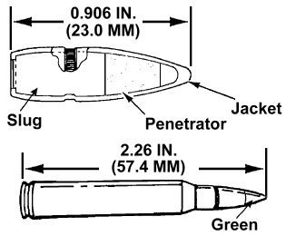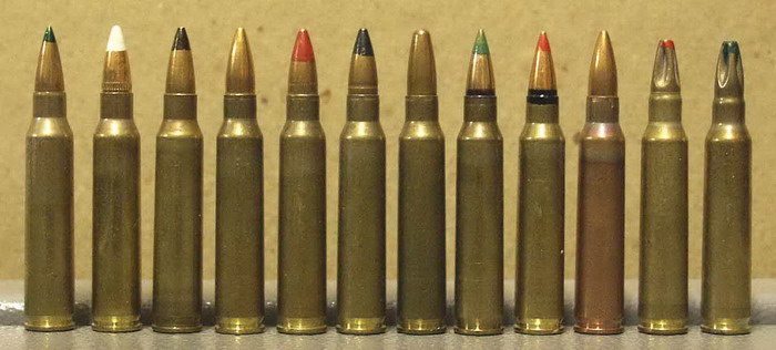 (ดูข้อมูลเปรียบเทียบ) แต่จะเกิดผลเสียทางขีปนวิธีคือระยะยิงหวังผลและความแม่นยำจะลดลง ปัจจุบันกระสุนชนิดนี้มีการผลิตในหลายประเทศจึงขอนำกระสุนที่ผลิตจากประเทศ สหรัฐอเมริกาเป็นตัวอย่างข้อมูลดังนี้