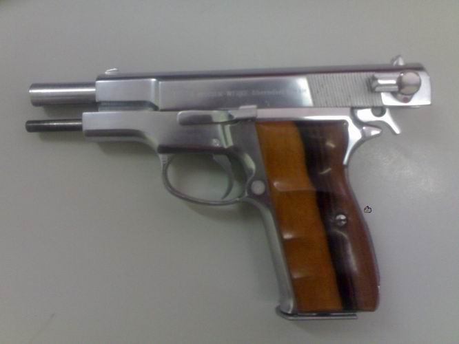 ตัวนี้เป็นรุ่นคอมแพค ลำสั้นกว่าตัวเต็ม ครึ่งนิ้ว เมาเซอร์รุ่นนี้ทำในฮังการรี พะยี่ห้อเยอรมัน ไกแข็งแต่ก็แต่งให้เบาได้ ราคาพอฟัง เพราะเข้ามาเป็นปืนสวัสดิการ ราคาไม่แพง คุณเปลี่ยนด้ามแล้วคงดีขึ้น เพราะประกับเก่า ขี้เหร่อย่าบอกใคร ความทนทานไม่ต้องห่วง ลำกล้องชุบฮาทโครม ถ้าผมดูไม่ผิดกระบอกนี้ชุบฮาทโครมมา ราคาน่าจะถูกกว่านี้หน่อย แต่ช่างเถอะได้มาแล้ว เอาไปแต่งไกหน่อย ตัดสปริงนกออกสักสองข้อ ไกดับเบิ้ลจะได้เบาหน่อย ดัดสปริงเซียร์หน่อยก็เบาลงมาก โครงสร้างแข็งแรง ฟิตได้นิดหน่อย แต่หนักพอๆกับพวก 75 บี หรือ 1911 ดีตรงมีคันลดนก ผมเคยถอดปืนนี้แบบแยกชิ้น แต่ผมถอดชุดคันลดนกกับชุดเข็มไม่เป็น จนถึงทุกวันนี้