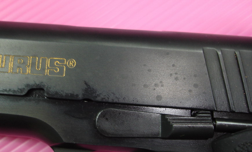 ผมว่าน่าจะเป็นที่น้ำยาที่เช็ดปืนหรือเปล่าครับดูจากละอองการพ่น...โทษน่ะครับใช้น้ำยาอะไรเช็ดปืนครับ