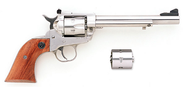 กระบอกนี้ซิครับ ลูกไม่โม้ด้วยแต่เป็นลูกโม่แท้ๆ เปลี่ยนลูกโม่ได้ทำให้ใช้กระสุนได้ 2 ขนาดในกระบอกเดียวกันคือ .22 LR/.22 Mag.