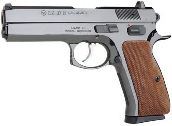 พี่ๆครับวันนี้ พี่ที่ทำงานด้วยกัน เค้าได้ใบ ป.3 ระบุว่า สวัสดิการ ปค. ขนาด .45 ผมพยายามหารูปให้พี่เค้าดู พี่เค้าบอกว่า ลำกล้อง 4นิ้ว สแตนเลส พี่เค้าได้รู้มาจากปลัดท่านนึงในท้องถิ่นรับเป็นธุระให้ คงอยู่ในระดับ คอมแพ็ค แต่ผมดูในเน็ทก็พบอยู่ตัวเดียวคือ CZ 97 B ลำกล้อง 5นิ้ว อยากทราบว่ายังมีตัวให้อีกบ้างครับ ...ด้วยความเคารพ