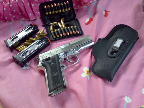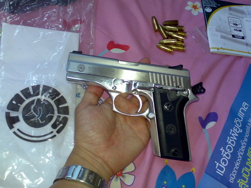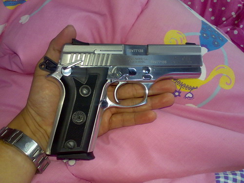 ซื้อช่วงนี้ปืนราคาแพงหูฉี่ครับ ซีแซดก็แสนขึ้น กล๊อคก็แสนขึ้น ยี่ห้ออื่นเช่น เบอเรตต้า ซิก วอลเธอร์ คงไม่ต้องกล่าวถึง เทารัสตัวในภาพนี้ผมใช้อยู่ประจำกายตลอด 24 ชม. (ไม่ได้พกตอนนอนแค่นั้น) คุณภาพหายห่วง