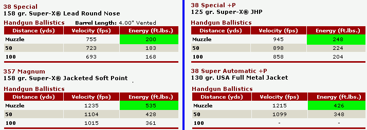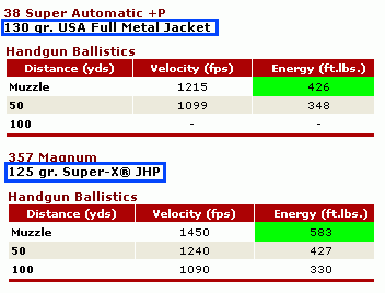 .357 Magnum มีอำนาจทะลุทะลวงมากกว่า .38 Super อยู่นิสหน่อยครับ ถ้าพูดถึงพลังงานล่ะก็...ก็คงไม่พ้น .357 ล่ะครับ