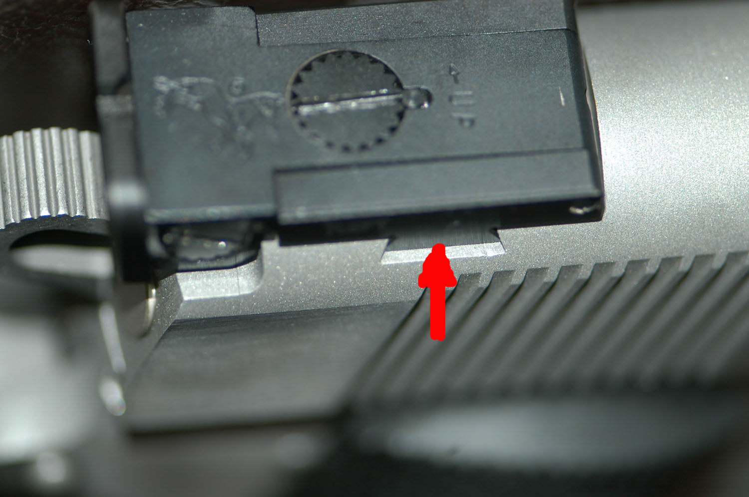 ท่านคลายน๊อตปรับสูงต่ำออกให้หมด จะมีสปริงแข็งวางอยู่ เอาออกอย่าให้หาย พลิกใบศูนย์ขึ้น จะมีสกรูหกเหลี่ยมอัลเลน หาประแจอัลเลนที่พอดี (เข้าใจว่าเป็นระบบวัดแบบนิ้ว) คลายออกเล็กน้อยใหม่ๆอาจจะฝืดหน่อยอาจจต้องใช้ค้อนยางหรือไม้เคาะเลื่อน เอาให้ตรงกลางลำเลื่อนเป๊ะ แล้วประกอปคืน ครับ