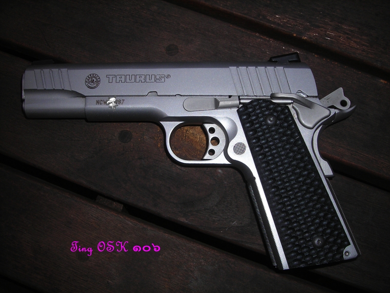 เมื่อท่านเปลี่ยนชุดลั่นไก แน่นอนท่านต้องเปลี่ยนนกด้วย ปัญหาของเทารัสคือมันมีกุญแจล๊อกที่นก ซึ่งขานกที่ยันกับเมนสปริงมันจะมีเดือยขึ้นมารับกับชุดกุญแจที่ว่านี่ ทางเลือกมี 2 ทาง คือขายัน ไม่ซื้อใหม่แต่ตะใบเดือยนี้ออก หรือไม่ก็ซื้อมาใส่ใหม่ ปัญหาอีกอันหนึ่งคือรูสลักนกสับของชุด C&S มันจะเล็กกว่าชาวบ้านเขานิดหนึ่ง