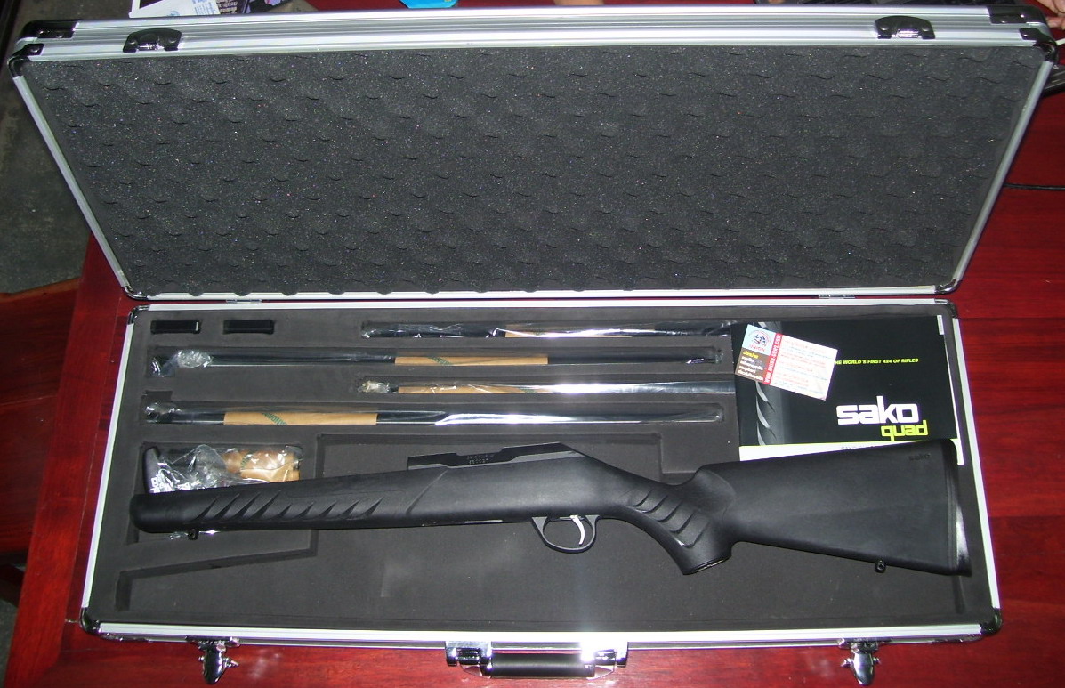 กระบอกนี้น่าสนใจมากๆนะครับ SAKO QUAD SYNTHETIG เป็นปืนยาวที่มีลำกล้องให้มาถึง 4 ลำกล้อง คือขนาด .22LR / .22แม็กนั่ม / .17HMR / .17MACH 2 ปรับเปลี่ยนลำกล้องได้ตามความพอใจ ซื้อกระบอกเดียวเหมือนได้ 4 กระบอกเลยครับ