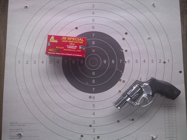ศูนย์หน้าชี้ที่เป้า.....ปืน เทารัส เอ็ม 85 เอส ผมก็เคยใช้อยู่ครับ...แต่ผมใช้เพียงศูนย์หน้า เล็ง และเหนี่ยวไก ยิงระยะประชิด ไม่เกิน 10 หลา ครับ