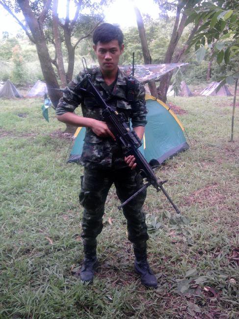 พ่อหนุ่มที่ยืนข้างหลังหมู่แม็กนั่นน่ะ ยืนอย่างท้าทายอวดปืนประจำตัวอย่างไม่มีความยำเกรงเจ้าหน้าที่บ้านเมืองอย่างหมู่แม็กเลยนะครับ
