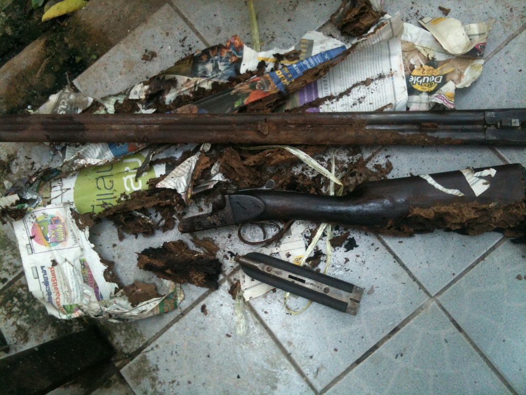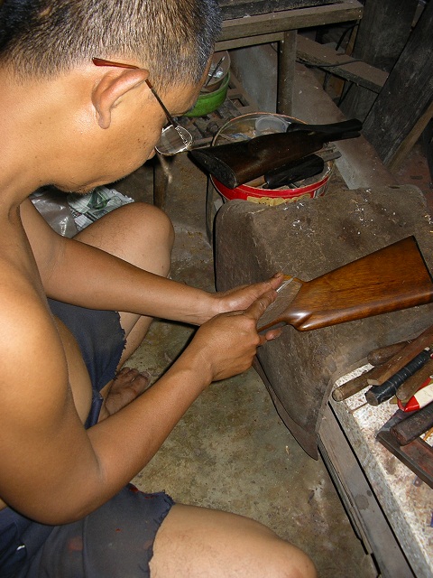 ควรเอาปืนไปทั้งพานท้ายเก่าที่โดนปลวกแทะด้วยนะครับอย่าแกะมันออก ช่างจะได้ดูแง่มุมภายในของพานท้ายเดิมแล้วเอามาทำใหม่ให้ใกล้เคียงของเดิมได้
