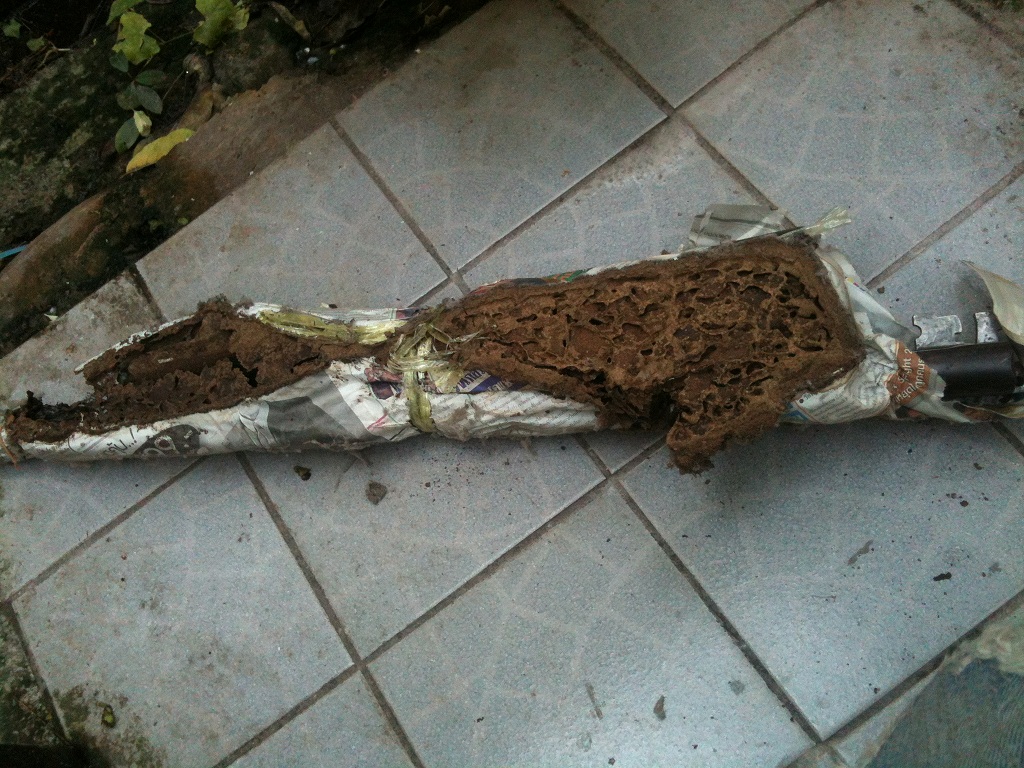 อื้อหือ....เสียหายยับเยินเลยจริงๆนะครับ โชคยังดีที่กระโจมมือยังดูดีอยู่และปลวกไม่แทะเนื้อเหล็กเข้าไปด้วย...แฮ่ะๆ...ล้อเล่น