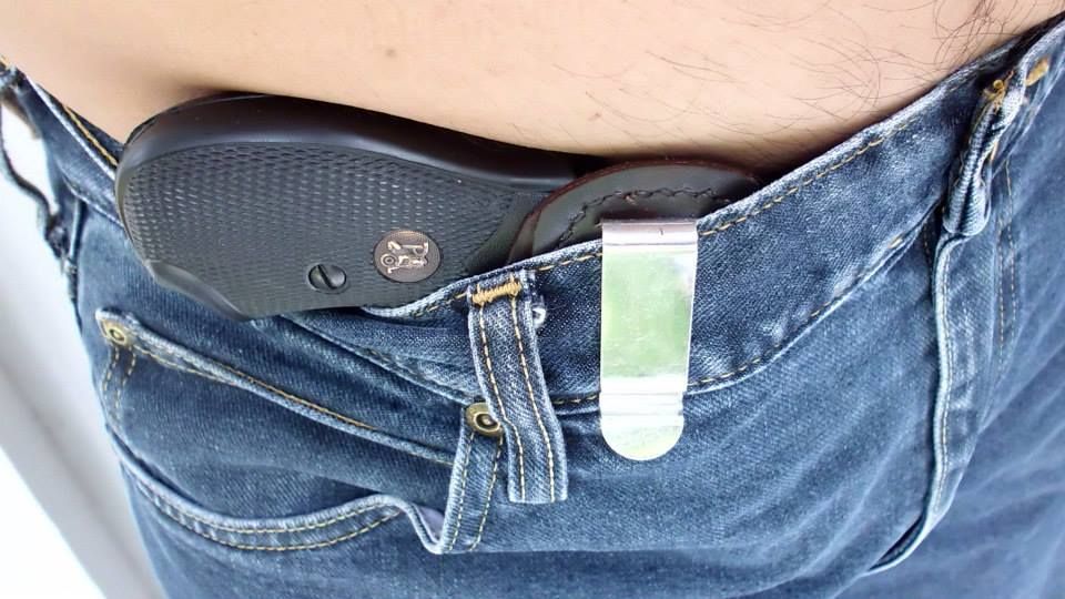 ให้ตัวปืนเฉียงไปที่ง้ามขา ทำให้..เก็บปืนได้ลึกขึ้น มิดขึ้น ยิ่งเป็นด้ามไม้เล็กสามารถซ่อนปืนในแนวตะเข็มกางเกงได้อย่างมิดชิด อยากที่ฝ่ายตรงข้ามจะสังเกตุได้