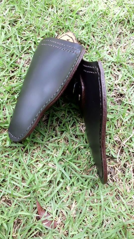ซองปืนที่ออกแบบใหม่ ด้วยหนังวัวแท้ ฟอกสีจากโรงงาน เย็บด้วยด้านแน่นหนา(ทำมือ) ดีไซน์ที่เหน็บใหม่ให้ลึกขึ้น เย็บที่เหน็บทำมุมเฉียง