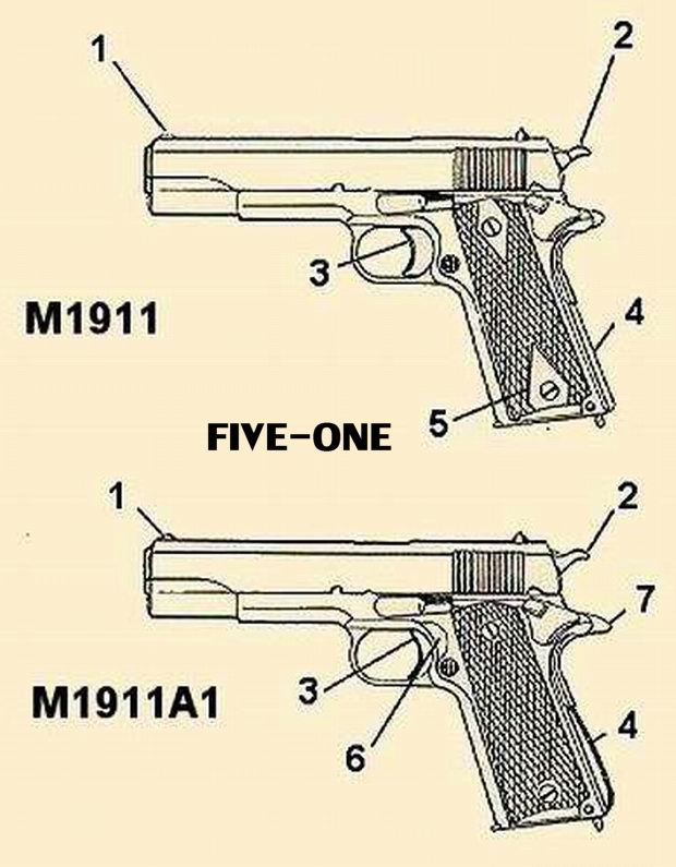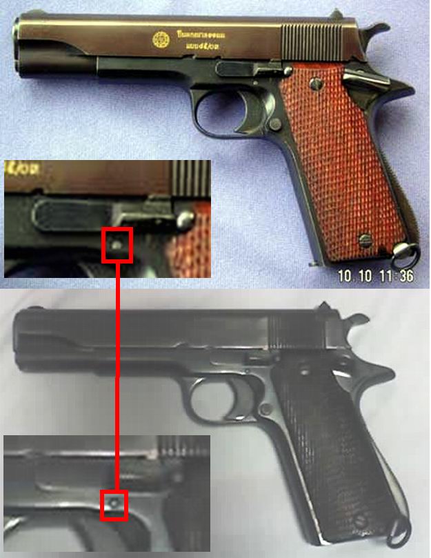 ในภาพด้านล่าง...เป็น colt และจุดเปรียบต่างระหว่าง A1 และ 1911 ครับ